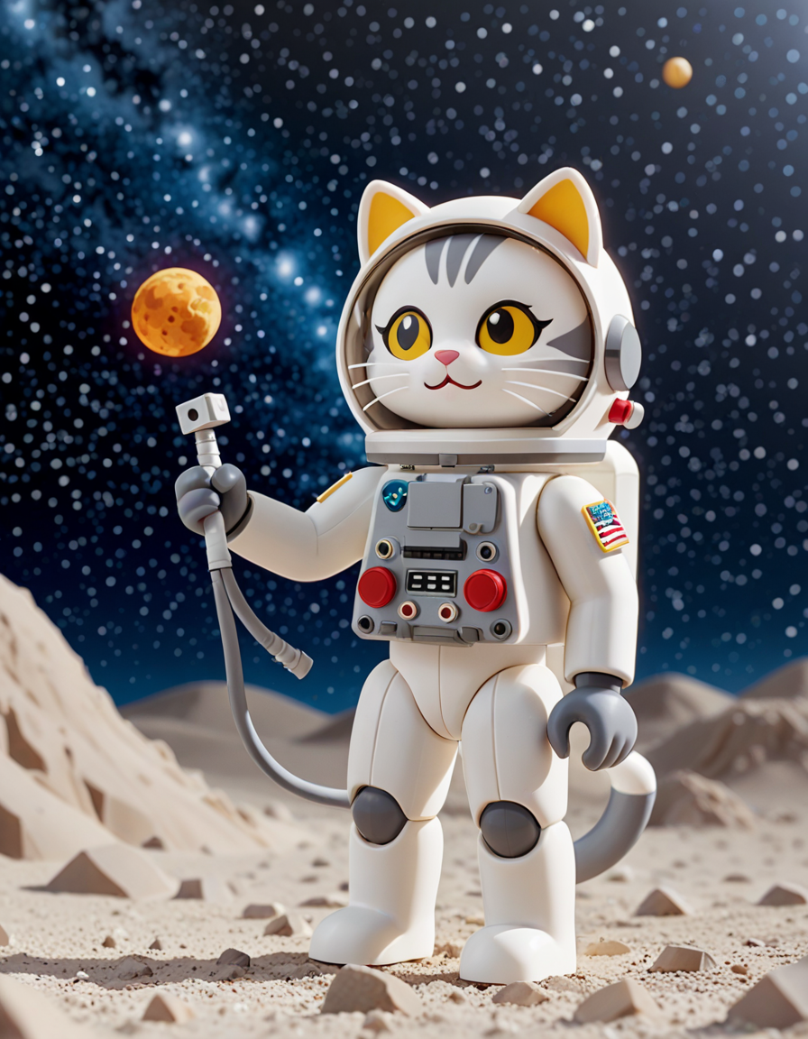 in outer space, an astronaut cat ,novuschroma53 style <lora:dmd2_sdxl_4step_lora:0.7> <lora:novuschroma53 style:1>